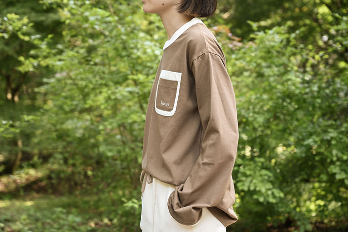 ●胸元にはカラーコントラストの二重ポケットがあり、可愛さと実用性を兼ね備えています。