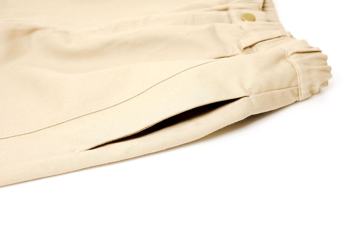 ハリのある耐燃性コットン素材を使用した、3ピースパターンのパンツです。