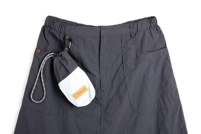 【機能】:ウエスト後ろゴム・フロントポケット・Aラインシルエット・収納ポーチ付き